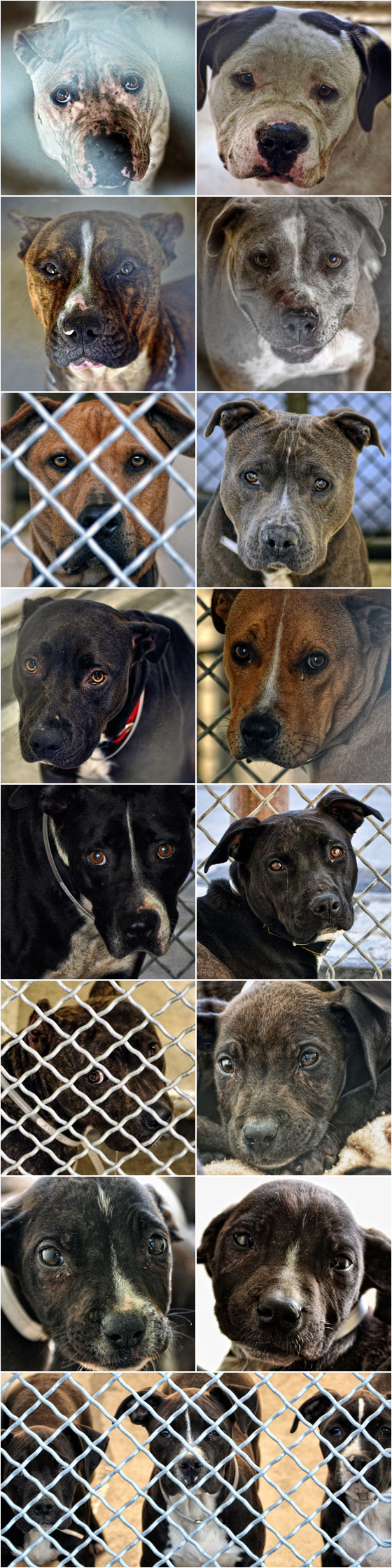 The specific killing of the 18 Pit Bull-type dogs mentioned in the title all happened between the 25th & 26th, I have no outcomes for the 24th. These are the actual faces of the dogs (minus 1) that were killed: