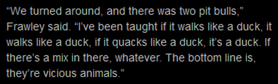 ^Where do you start with this nonsensical doubletalk? Again, more sensationalism; then he says that they are flooding the shelters; then he claims that they don’t get adopted; then he brings up euthanasia, almost as a way to sympathize with the Pit Bull’s plight, even though they are the ones choosing not to promote them (or even show them) and kill them at the shelters instead; then he claims that the ordinance is meant to deal with problematic owners, even though it’s not, and even though they continuously fail to charge theses problematic owners. History shows that. It’s all just such rubbish.