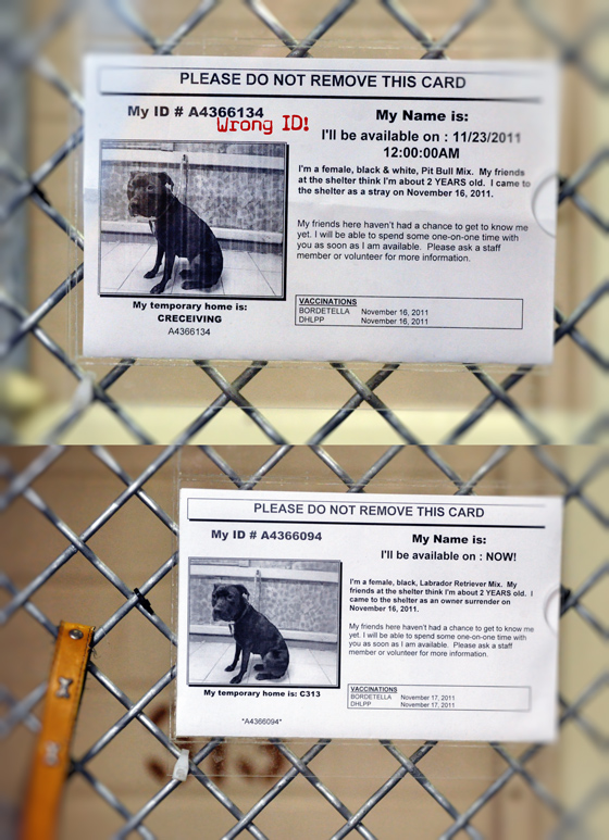 Allow me to put myself in this individuals position… If I were him, I would have manually emptied each water bowl into the drainage system at the same time that I opened the cage to put the bowl of food in the run. That way, each dog would have an EMPTY water bowl and you could literally stand there at the faucet system and watch the closest dish fill up, stopping it right before the brim and knowing that EACH bowl would have the exact same amount of FRESH water in it (since every bowl was emptied first). It’s a simple thing, and it just takes someone to give a damn, as well as a few extra seconds at each cage… There would be no flooding of the kennel floors, no scared dogs, no wet blankets, no wet food. Unfortunately, the guy who did this today is the same guy that always throws their food bowls into the cages–often times spilling them onto the floor–and then slamming each cage door shut with an unnecessary amount of ferocity. This is of course done while he wears noise-canceling headphones and goes from cage to cage like a robot who doesn’t even care to notice the animals inside. This kennel workers name is “R. Celaya.”